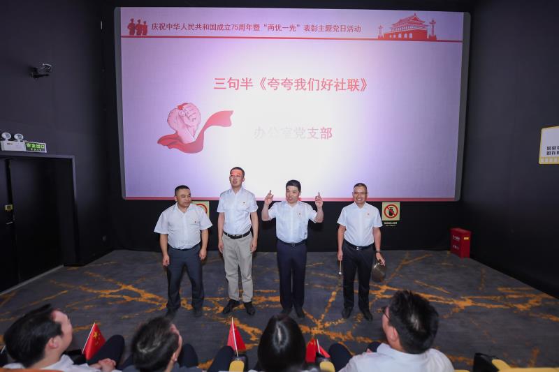 活动中,各个支部精心准备了节目。办公室党支部表演的三句半《夸夸我们好社联》,以轻松幽默的方式展示了省社科联的风采;科研科普部党支部的集体朗诵《站在十月的国土》,带领我们感受祖国的壮丽山河和伟大成就;社会组织管理部党支部的《军体拳表演》,展示出我们社科联机关人员的精气神和战斗力;信息部党支部的大合唱《我们走在大路上》,激励我们在新时代的征程上坚定信念、奋勇前行?;疃詈?,大家一起观看了电影《解密》。